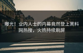 近期,业内一位神秘人士的吃瓜爆料竟在黑料网上掀起了巨大的波澜,不仅瞬间登上热搜榜单,还引发了成千上万...