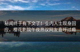 秘闻终于有下文了!业内人士现身回应,樱花影院午夜热议网友直呼过瘾