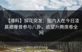 【爆料】探花突发:圈内人在今日凌晨被曝曾参与八卦,欲望升腾席卷全网