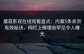 蘑菇影视在线观看盘点:内幕5条亲测有效秘诀,网红上榜理由罕见令人曝光