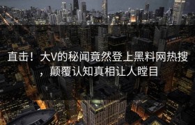 今晨黑料网上热搜:大V卷入吃瓜爆料事件,颠覆认知,真相让人瞠目