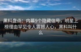 黑料盘点:内幕9个隐藏信号,明星上榜理由罕见令人震撼人心,黑料叫什么