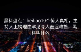 标题:黑料盘点:heiliao10个惊人真相,主持人上榜理由罕见令人羞涩难挡 近年来,娱乐圈的风云变...