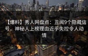 【爆料】秀人网盘点:丑闻9个隐藏信号,神秘人上榜理由近乎失控令人动情