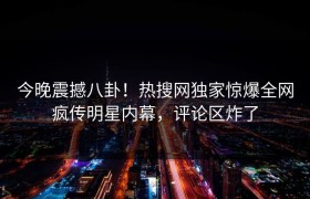 最近,网络上出现了一条爆炸性消息,让无数网友为之疯狂。某位明星因为一件八卦事件迅速登上了热搜第一,成...