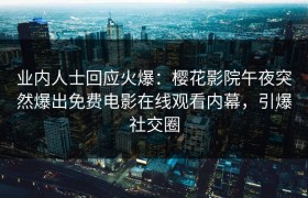 近日,樱花影院的一场意外风波引爆了社交网络,众多影迷纷纷在凌晨时分争相观看免费电影。虽然一开始不少人...