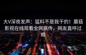大V深夜发声:猛料不是我干的!蘑菇影视在线观看全网疯传,网友直呼过瘾