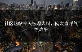 今天,一则社区热帖突然在各大社交平台引发了热议,内容不仅触动了人们的神经,更激起了众多网友的愤怒与不...