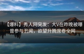 【爆料】秀人网突发:大V在昨晚被曝曾参与丑闻,欲望升腾席卷全网 近日,秀人网突发的丑闻引发了全网的关...