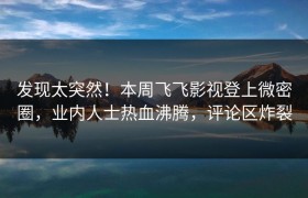 发现太突然!本周飞飞影视登上微密圈,业内人士热血沸腾,评论区炸裂