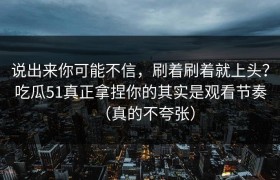 说出来你可能不信,刷着刷着就上头?吃瓜51真正拿捏你的其实是观看节奏(真的不夸张)