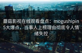 蘑菇影视在线观看盘点:mogushipin5大爆点,当事人上榜理由彻底令人情绪失控 在当今多元化娱乐...