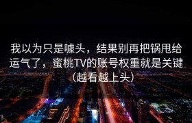 我以为只是噱头,结果别再把锅甩给运气了,蜜桃TV的账号权重就是关键(越看越上头) 当初把内容火不火的...